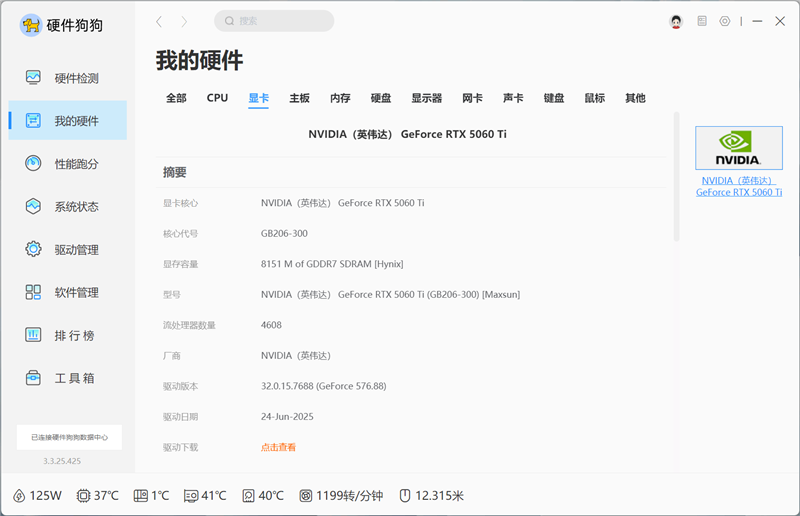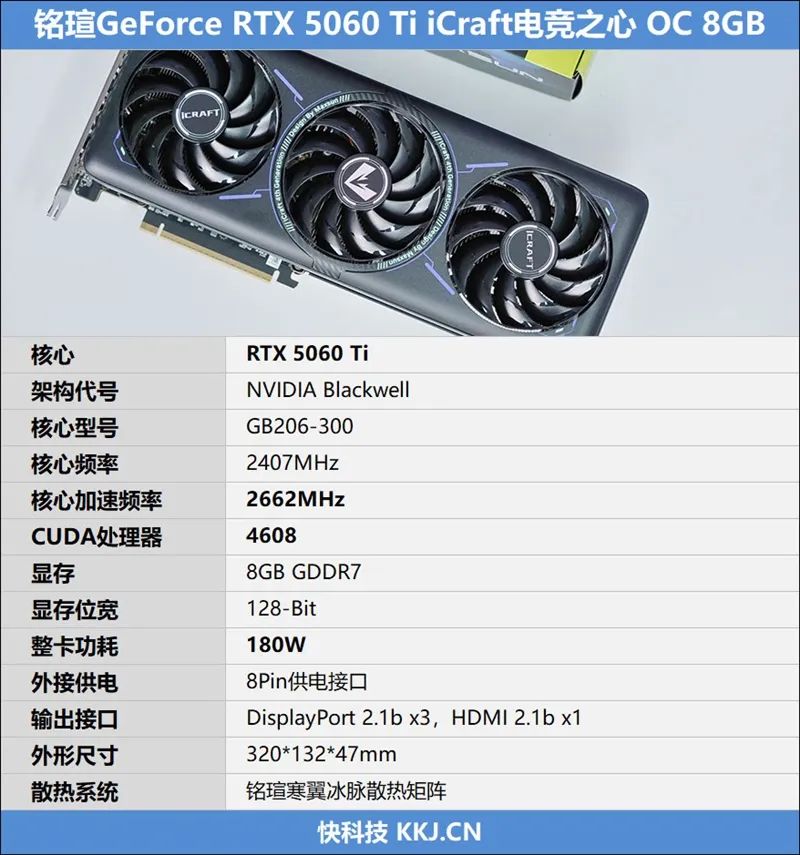 The Maxsun GeForce RTX 5060 Ti iCraft OC 8GB graphics card is equipped with the RTX 5060 Ti GPU based on NVIDIA's Blackwell architecture, with a core number of GB206-300. The core contains 36 SM units and 4608 CUDA cores (streaming processors).