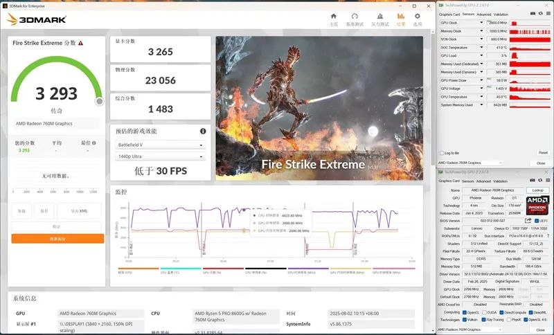 The Ryzen 5 8600G features the Radeon 760M GPU, based on RDNA 3 with 8 compute units, totaling 512 stream processors at 2800MHz. In contrast, the i5-14500 uses the Intel UHD 770 GPU with 32 EU units, each EU containing 8 Shader Cores, equivalent to 256 stream processors at 1.55GHz.