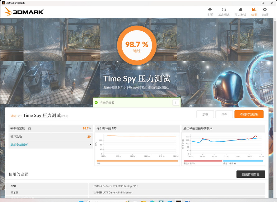 In the Time Spy stress test, the Mechrevo Canglong 16 Ultra achieved a frame rate stability of 98.7% in 20 cycles, showing that the cooling system is quite effective.