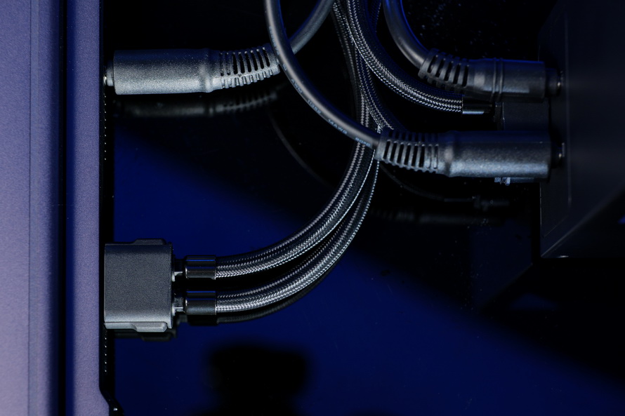 Second, it uses an external water cooler to transfer part of the internal heat outside the laptop through water and dissipate it. To prevent accidents, the external water cooler connects the gaming laptop to the cooler through a magnetic Adsorption interface water pipe. If the cooler is accidentally knocked under the desk, the water pipe interface will automatically close to prevent leakage, ensuring high safety.