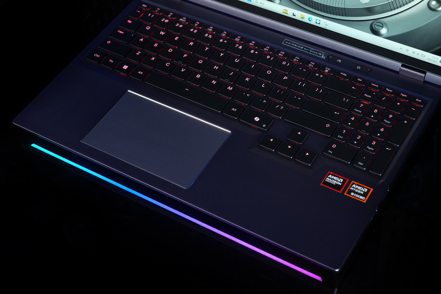 For a gaming laptop, atmosphere is essential. The Canglong 16 Ultra features an independent numeric keypad with full-key no-conflict functionality, and each key has a travel distance of 1.4mm with individual RGB lighting effects adjustable in 16 million colors. At the front of the laptop, there is also an RGB atmosphere light strip composed of 54 LED beads, and the A-side features an RGB colorful Mechanical Revolution logo, creating a multidimensional gaming atmosphere.