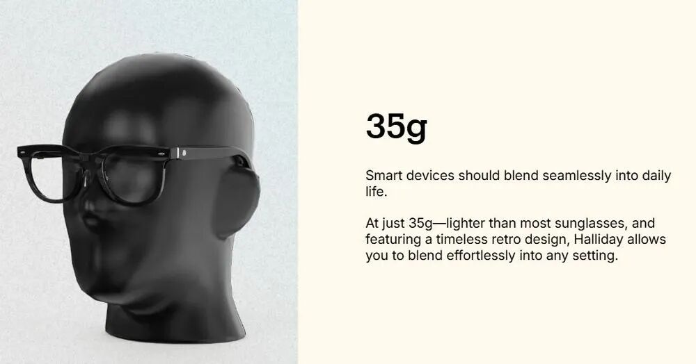 The Halliday frame weighs only 35 grams, not only lighter than most ordinary black-framed glasses on the market but also less than half the weight of Meta Ray-Ban Display (89 grams). Such a lightweight design eliminates the 'burden of wearing' commonly associated with electronic devices. It's no longer a gadget you need to 'make up your mind' to wear outside but a daily item you can wear all day like ordinary prescription glasses. This 'seamless integration' experience is a crucial step towards the true popularization of AI glasses.