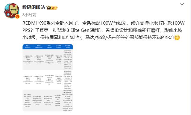 Firstly, the CPU chip is confirmed. The K90 will be equipped with the Snapdragon 8 Elite, while the K90 Pro will undoubtedly feature the Snapdragon 8 Elite Gen5. According to the leaks, the K90 series will come standard with 100W charging capabilities. Although this doesn't represent a significant leap from the 90W charging of the K80 series, it would be quite impressive if it could support the same 100W PPS charging as the Xiaomi 17 series, a possibility hinted at by the leaker. The battery life enhancement is modest, with a 7000mAh battery aligning with current cost-effective models.