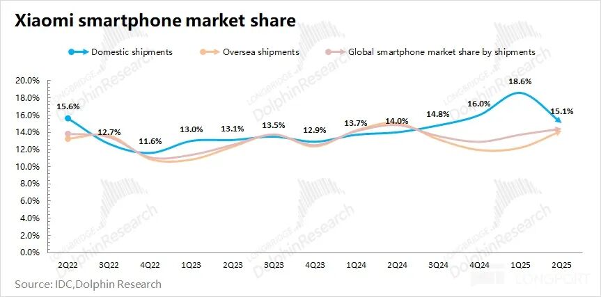 a) Domestic Market Pressure: Since the second half of last year, Xiaomi's market share has increased significantly, largely due to national subsidies. However, as the effects of these subsidies weaken, its domestic market share has started to decline.