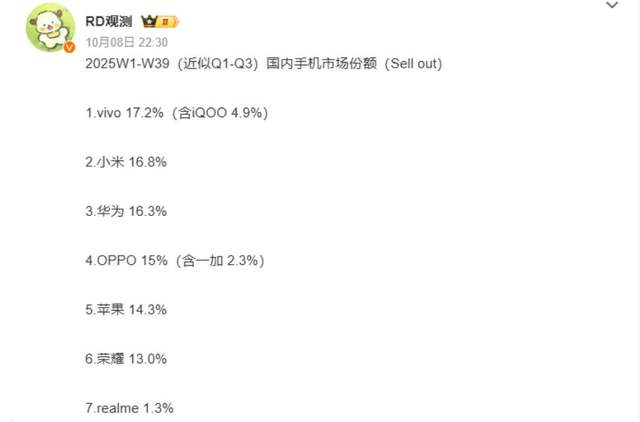 Recently, a reputable institution released sales data for the domestic mobile phone market during the first three quarters of 2025, indicating that the era for small manufacturers is drawing to a close.