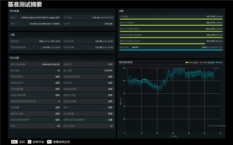 In Gears 5, using ultra-high quality settings at 2K resolution, the final test result was 127.1FPS.