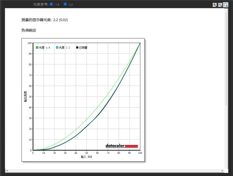The grayscale curve of the Colorful Jiangxing X16 Pro notebook screen has an initial Gamma value of 2.2.