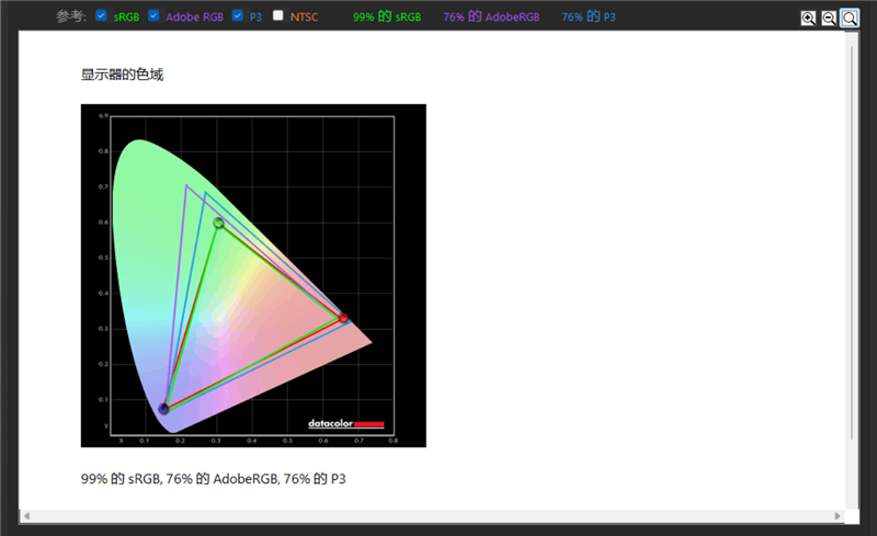We used the SpyderX Elite colorimeter to measure the screen of the Colorful Jiangxing X16 Pro laptop and found that in SDR mode, the screen can cover 99% of the sRGB color space.