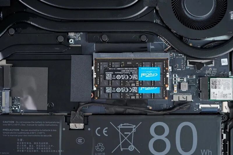 The Colorful Jiangxing X16 Pro laptop features an 80Wh battery, with large speaker resonance chambers placed on both sides of the battery.