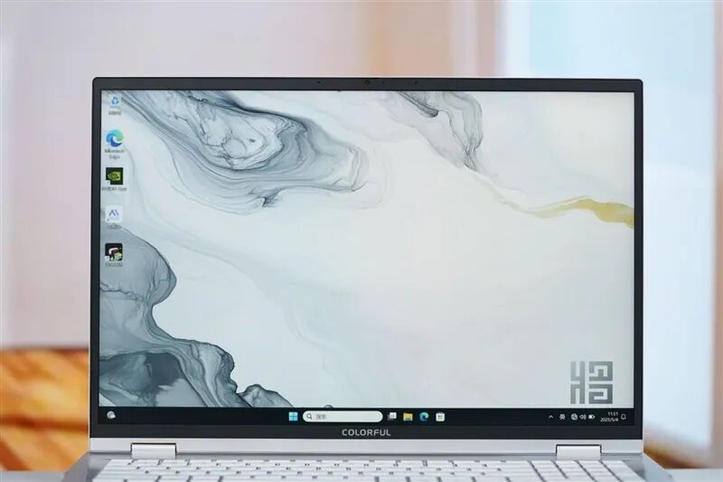 The screen of the Colorful Jiangxing X16 Pro laptop adopts a narrow-bezel design, with a slightly wider camera module at the top. The English logo of Colorful is centered below the screen.