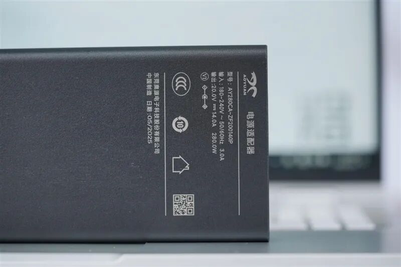 The power adapter included with the Colorful Jiangxing X16 Pro laptop has an input power of 280W.