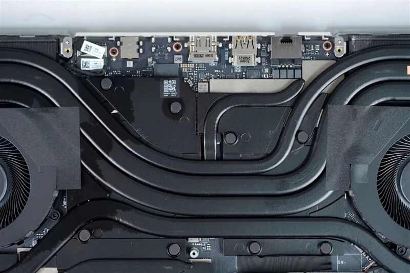 The Colorful Jiangxing X16 Pro laptop incorporates a dual-turbine fan high-efficiency cooling system with six heat pipes and four air outlets on three sides. It uses phase-change thermal materials internally, stably releasing 205W of power.