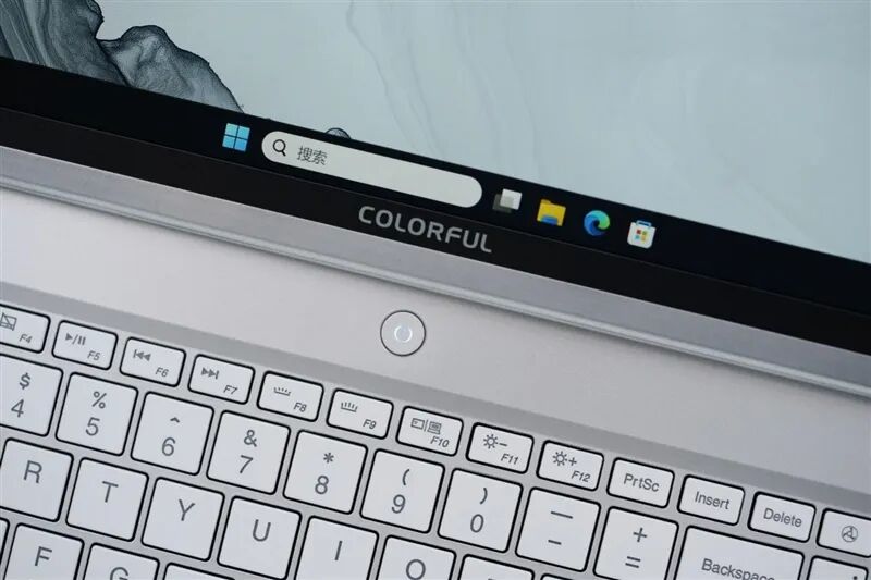 The C-face of the Colorful Jiangxing X16 Pro laptop is also silver-white. Thanks to the spacious 16-inch body, full-size keycaps make input easier, while a numeric keypad can be easily accommodated. An independent circular power button is placed above the keyboard area.