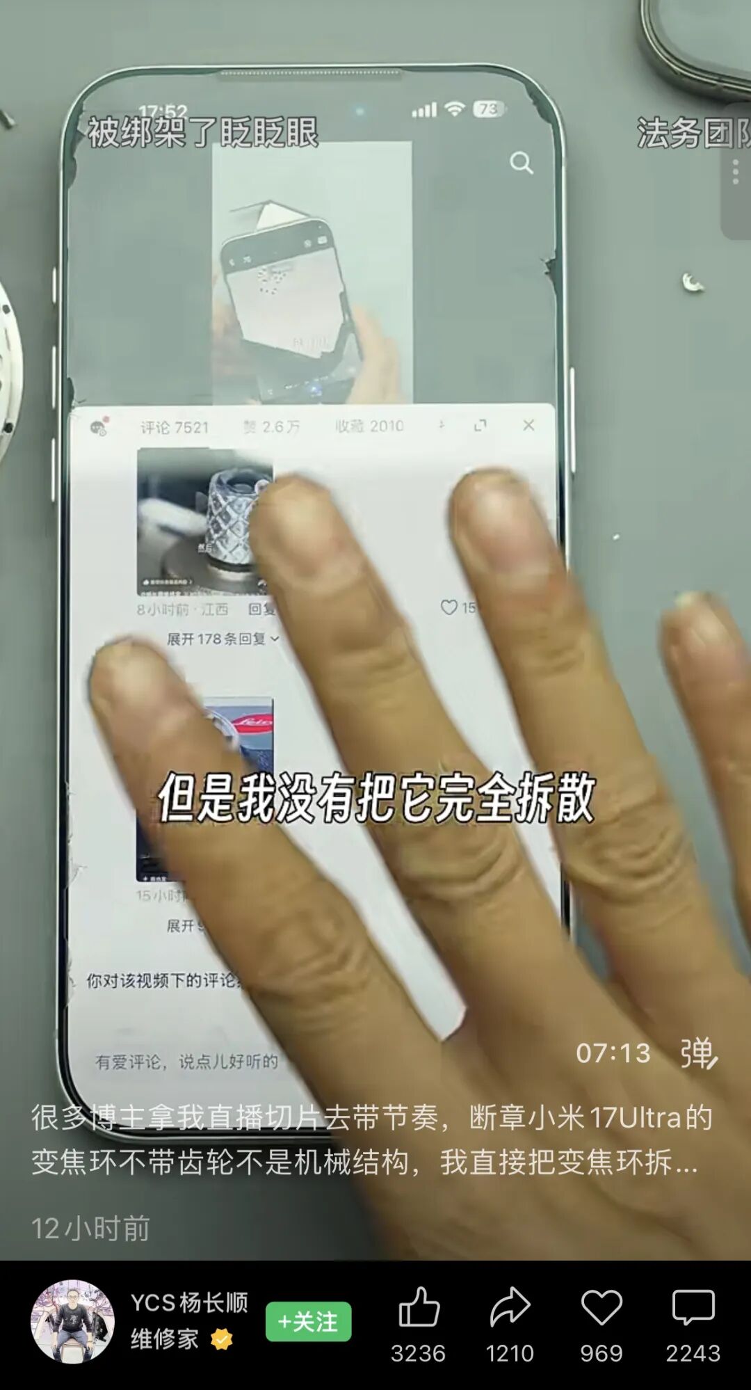 Subsequently, the video clip began circulating widely across the internet, and the topic shifted to "Is the Xiaomi 17 Ultra's zoom ring a fake?" Questions about mechanical zoom being replaced by software zoom started spreading rapidly.