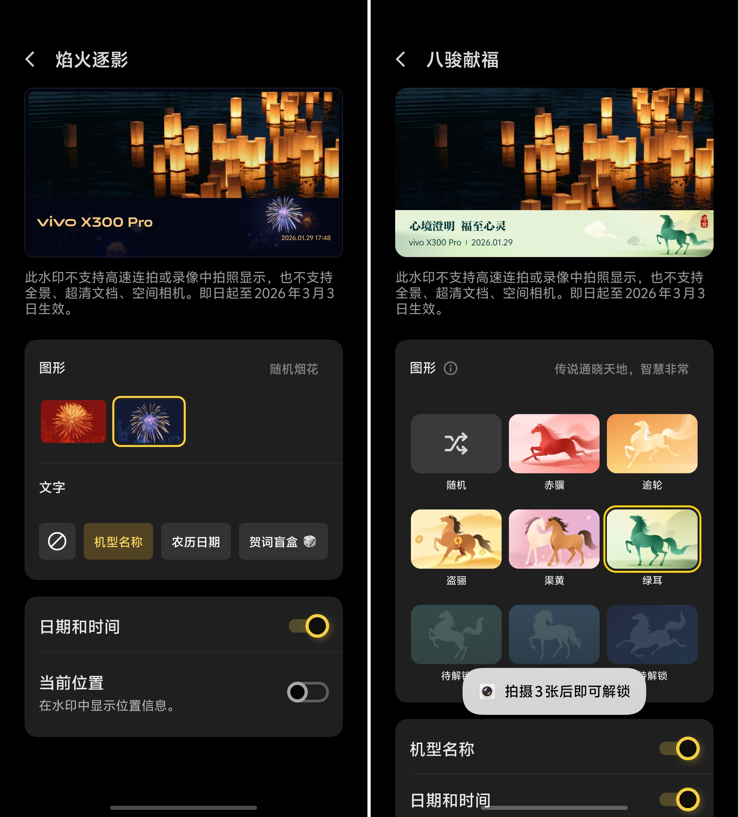 The flagship Year of the Horse limited-edition watermark even unlocks eight distinct patterns and theme colors as users take more photos, providing maximum emotional value.