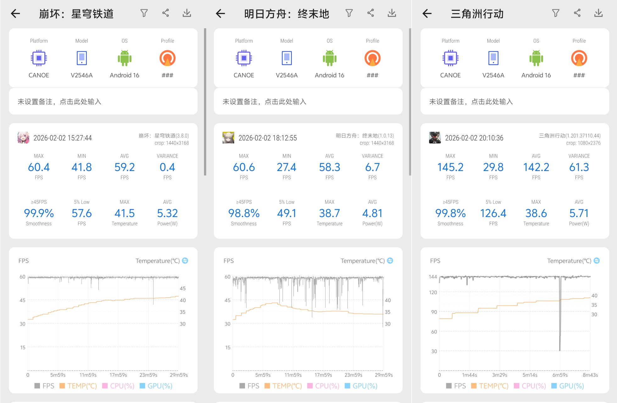 Our outdoor tests at 24°C with maximum graphics and frame rate settings revealed: - Delta Force: Average 142.2fps - Honkai: Star Rail: Average 59.2fps - Arknights: Endfield (at extreme rendering settings): Average 58.3fps