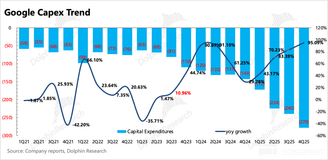 Doubling Capex reflects Google's determination to fully transition to AI and, to some extent, 'implicitly' signals significant future growth opportunities. Unlike Meta, which has a history of questionable spending, Google has not engaged in such blind 'wasteful' behavior before. Therefore, we believe this figure was carefully considered by management.