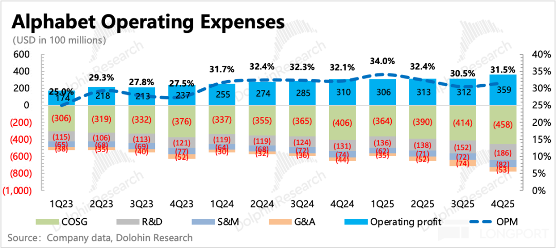 With the massive Capex expected in 2026, total expenses are set to surge if not controlled. Therefore, Google's workforce adjustments will continue, with Q4 net headcount growth significantly reduced to 650 compared to the first three quarters.