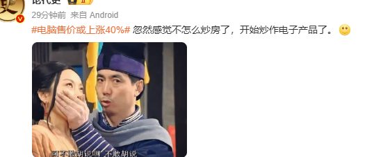 Upon encountering this news, numerous netizens, without prior consultation and quite coincidentally, expressed identical viewpoints: 'Are we shifting our speculative focus from real estate to electronics now?' 'I'm perplexed—are we no longer speculating on real estate?' 'This rhetoric bears a striking resemblance to real estate speculation.'
