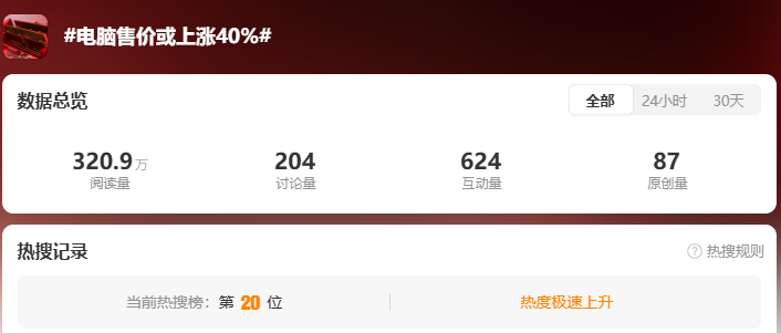 Today, related topics have also surged on the hot search list—computer prices may surge by over 40%.