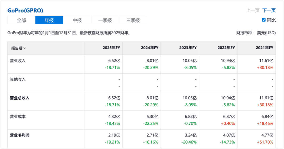 In this context, GoPro has already made multiple pricing adjustments in recent years, with some product lines nearing their profitability bottom line [translates as "bottom line"] in terms of terminal pricing. Combined with external factors like tariffs, GoPro's overall profitability is under pressure. Recent financial data shows that GoPro incurred a cumulative loss of $93.5 million last year.