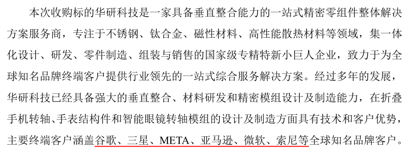According to Yuto's official announcement, Huayan's main end customers include global well-known brands such as Google, Samsung, META, Amazon, Microsoft, and Sony. According to supply chain sources, the hinge for M, the global leader in smart glasses shipments, is suspected to be supplied by Huayan.