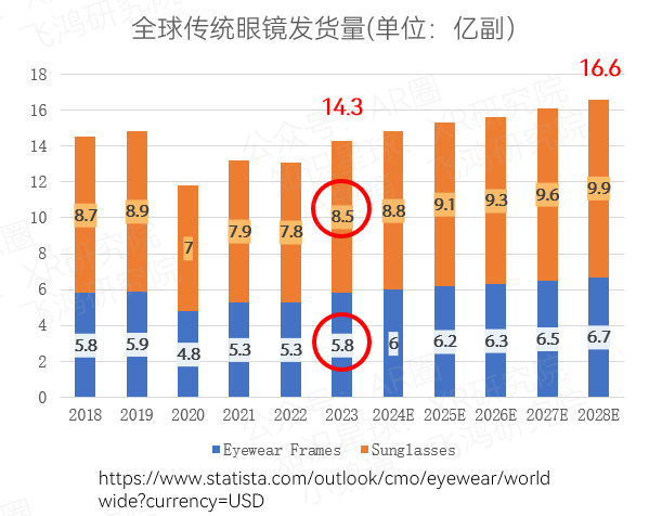 Traditional glasses ship about 1.4 billion pairs globally each year, more than the 1.2 billion smartphones. This is a number that many people overlook.