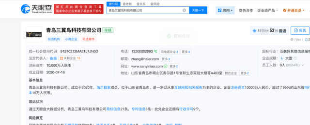 In the past, Haier rebranded as Haier Smart Home and launched the high-end smart ecosystem brand Sanwingbird, pursuing both high-end and intelligent paths. These moves were relatively successful in the traditional home appliance industry. According to Tianyancha APP information, Qingdao Sanwingbird Technology Company was established in 2020, and Haier’s intelligent transformation has only spanned a few years.