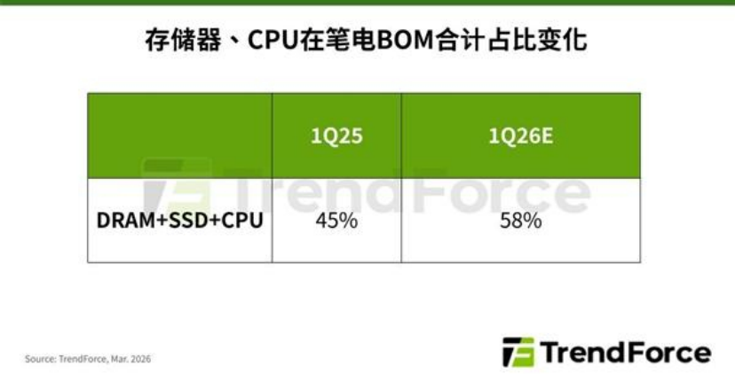 In March 2026, Intel announced price adjustments for some entry-level and older mobile CPUs, with increases exceeding 15%, further exacerbating overall system cost pressures.
