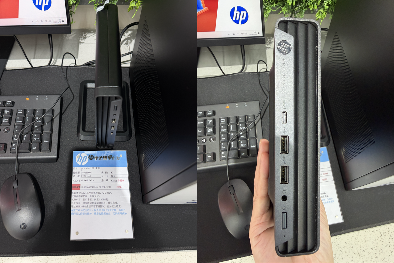 At two Lenovo stores in Huaqiangbei, staff reported no ultra-compact mini hosts on display or for sale. However, at an HP store, Leitech (ID: leitech) finally saw actual HP mini host products, priced starting at 5,999 yuan. Notably, HP's mini host not only starts significantly higher than Apple's Mac mini but also begins with just 8GB of memory, raising eyebrows.
