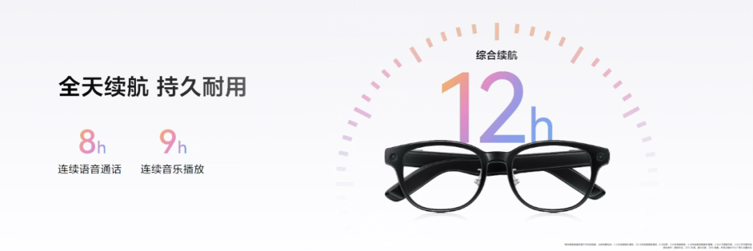 To balance high-performance computing with power efficiency, the glasses separate the Bluetooth MCU and ISP (Image Signal Processor) in their architecture, greatly extending battery life. The dual-temple batteries, totaling 252mAh, support up to 9 hours of continuous audio playback, 8 hours of voice calls, or 78 minutes of uninterrupted live streaming on a single charge.
