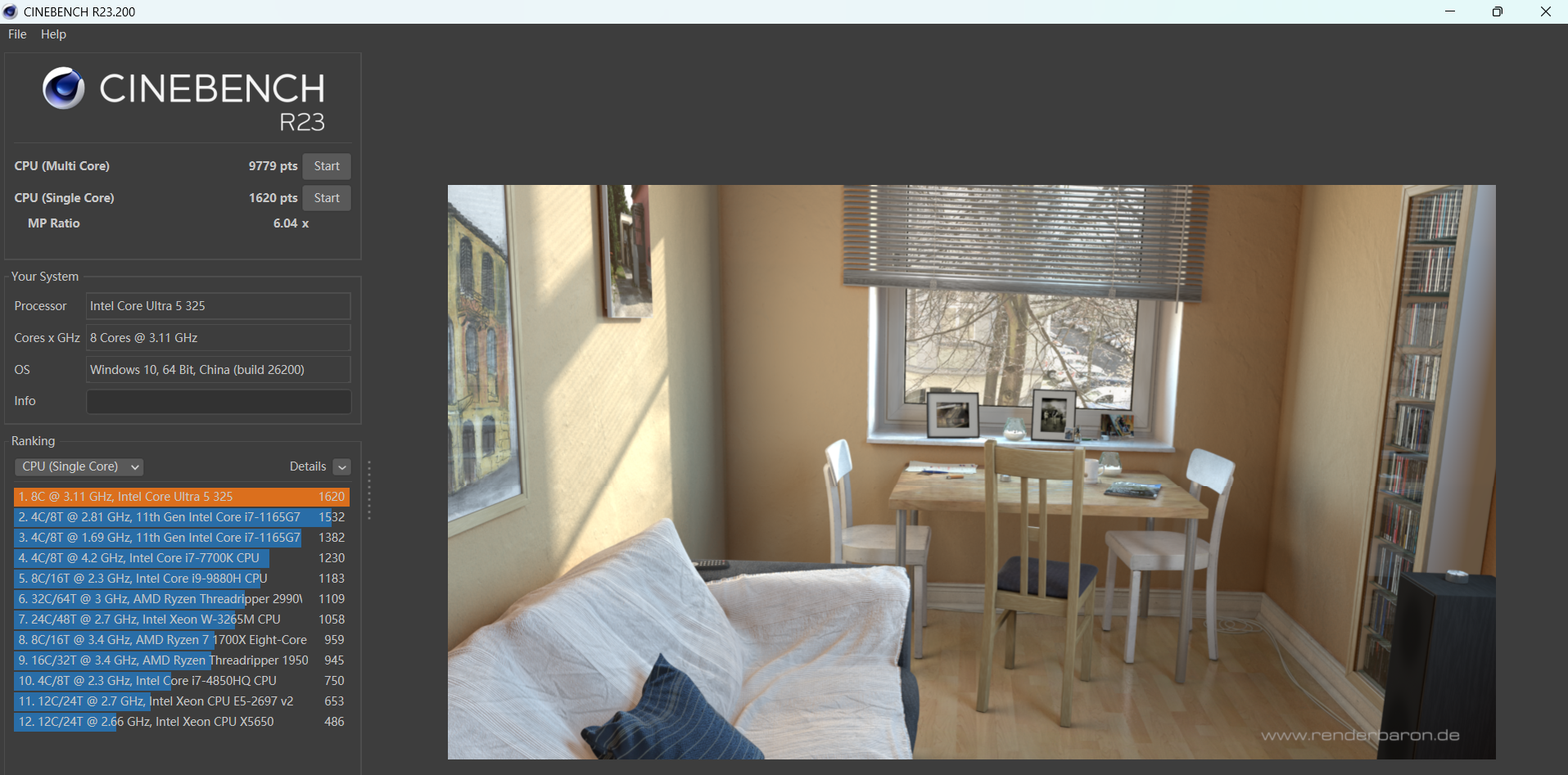 In CineBench R23, it achieved a single-core score of 1,620 and a multi-core score of 9,779.