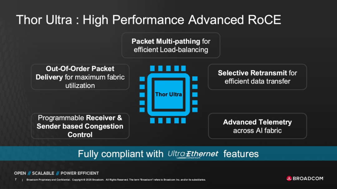 Compared to InfiniBand, the Ultra Ethernet system in which Thor Ultra operates offers distinct advantages in terms of compatibility, scalability, and ecological openness.