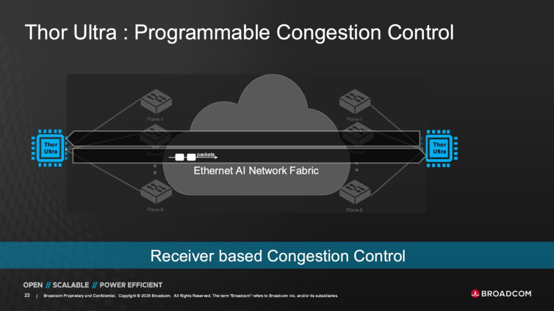 In terms of congestion management, Thor Ultra features a Programmable Congestion Control Pipeline. This pipeline supports bidirectional algorithm optimization based on both the receiver's and sender's perspectives.