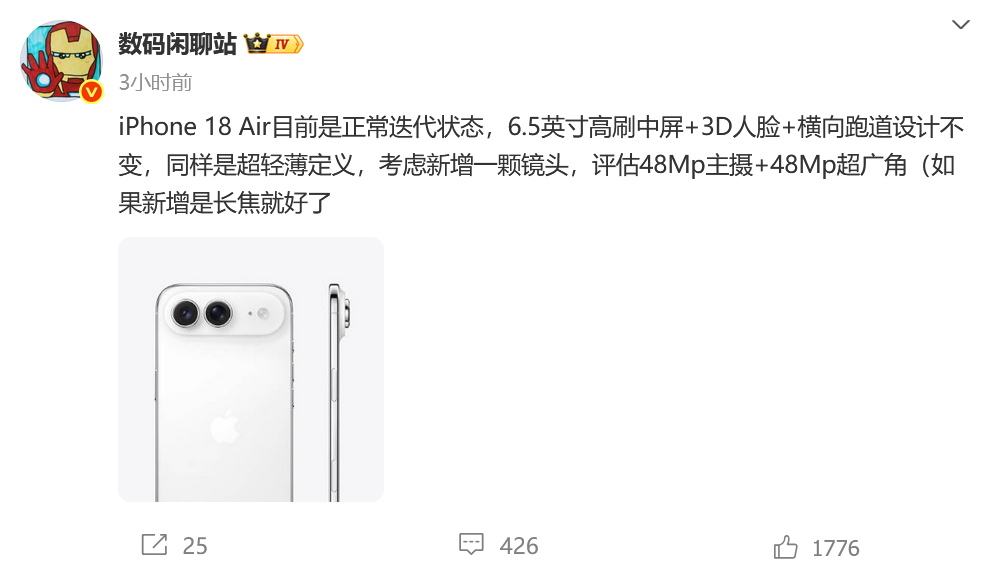 As for whether the iPhone Air 2 can make a comeback, we will have to await next year's developments. So, what are your thoughts? Can this series succeed? Feel free to share your opinions in the comments section~