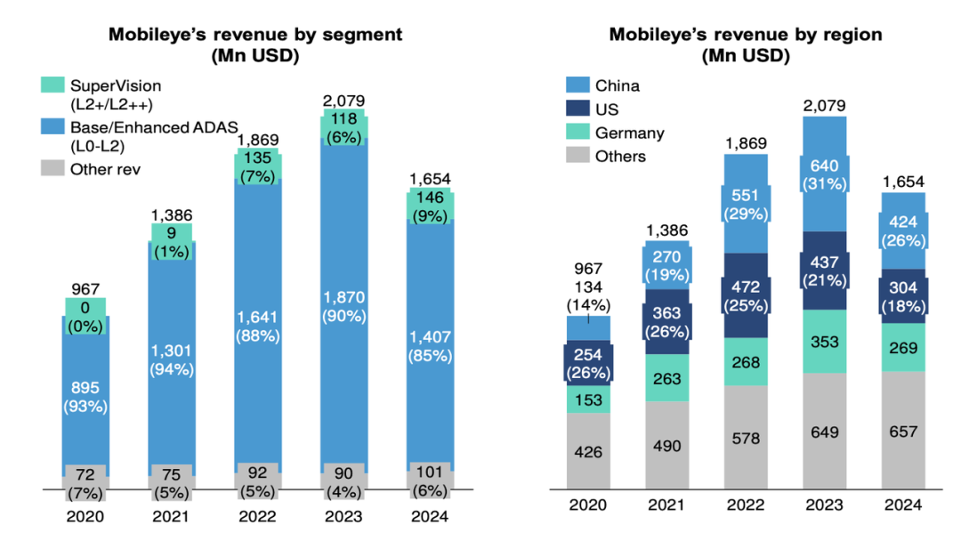 Mobileye's L0-L2 SoC shipments declined from 33.79 million units in 2023 to 28.71 million units in 2024, while shipments of its advanced SuperVision solution remained below 120,000 units. Its scaling advantage remains entrenched in the low-end market, while the high-end market, where significant growth potential lies, remains largely untapped.