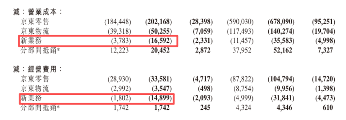 Figure: JD's Q3 new business operating costs and expenses. Source: Corporate financial report