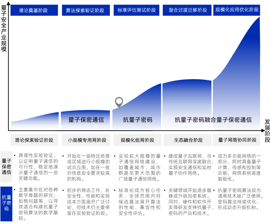 Quantum security represents a relatively mature and highly predictable market within the quantum technology sector. As the core defensive system against quantum computing threats, quantum security has forged a technological architecture with physical-layer security and mathematical-layer security as its dual pillars: The physical route, namely quantum secure communication, centers on the security of key distribution. It exploits physical properties such as the indivisibility, non-replicability, and uncertainty of quantum mechanics to generate true random numbers as encryption keys and ensures that any eavesdropping behavior will be detected by the communicating parties due to interference with quantum states, thereby guaranteeing the process security of key transmission based on physical principles.