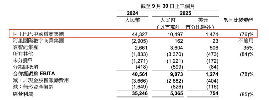 During the same period, the actual adjusted EBITA for the China E-commerce Group (original Taotian Group + instant retail) was RMB 10.497 billion, down 76% year-on-year. This reasonably suggests that the adjusted EBITA loss for the instant retail business in the third quarter of this year was RMB 37.66 billion.