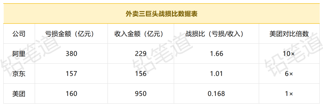 Converting this to a loss ratio: For every 1 yuan of revenue, Alibaba lost 1.66 yuan, while Meituan lost only 0.168 yuan. Conclusion: Alibaba’s loss ratio is ten times that of Meituan.