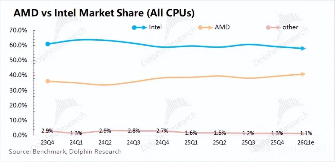 With the maturity of the Windows on Arm architecture, Qualcomm has established partnerships with industry giants like Microsoft, Dell, and Lenovo, breaking the x86 monopoly and entering the mainstream price range. Although Qualcomm has now entered the PC market, its current market share is still low and poses little threat to Intel and AMD.