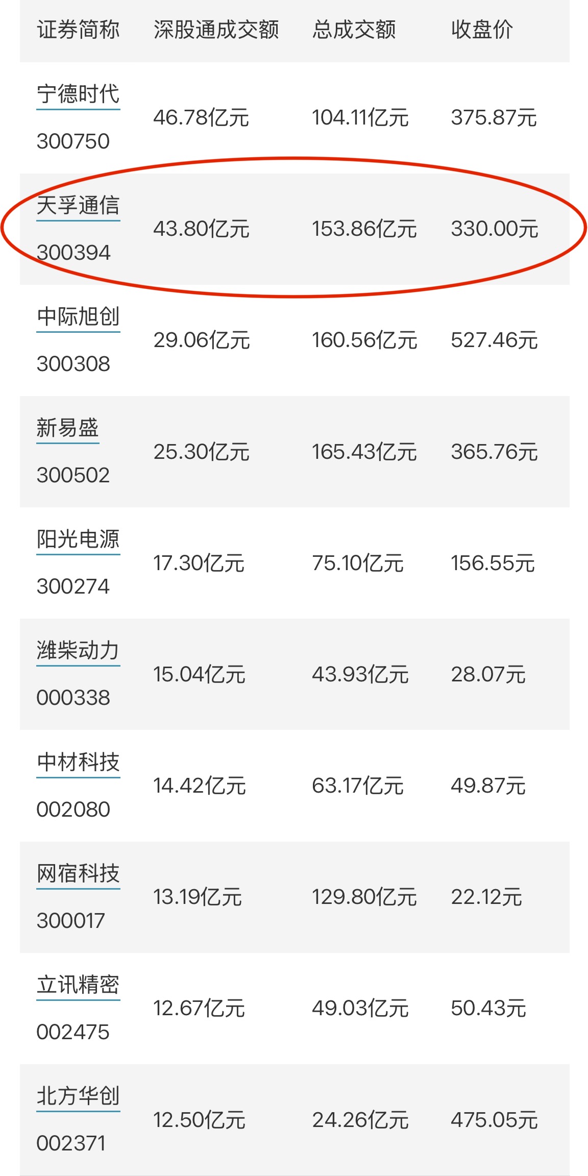 Tianfu Communication's total trading volume on February 12 reached 15.386 billion yuan, including 4.380 billion yuan in trading volume via the Shenzhen-Hong Kong Stock Connect, ranking second in Shenzhen Stock Connect trading volume.