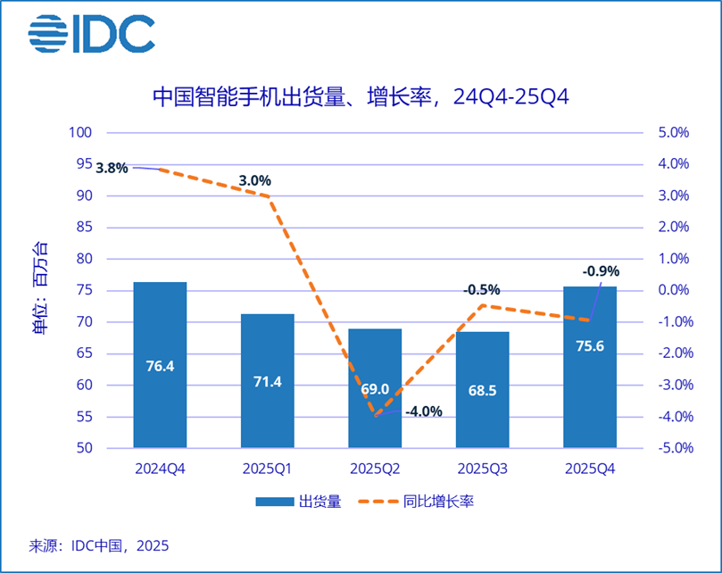IDC data shows that from 2019 to 2025, annual smartphone shipments in China dropped from 370 million to 284 million units, with a compound annual decline rate of 4.31%. The Chinese smartphone industry has long since entered a inventory (inventory-driven) era.