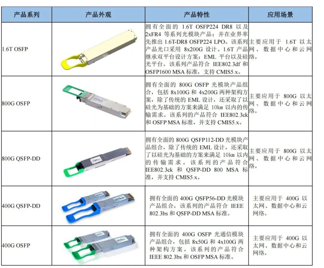 Coherent (Innolight)'s core business revolves around high-end optical communication transceiver modules, with transmission rates primarily at 100G, 200G, 400G, 800G, and 1.6T.