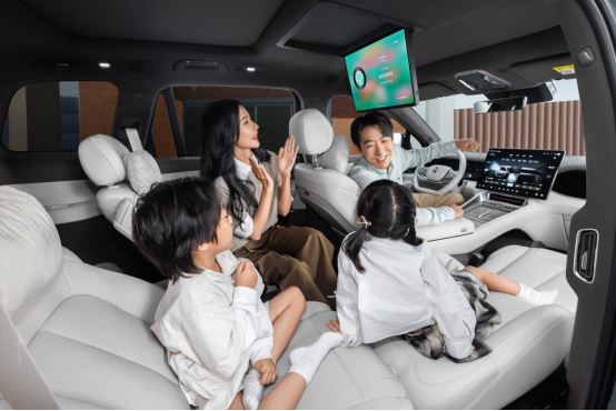 Leading intelligent configurations are also essential for family luxury travel. The 17.3-inch entertainment ceiling screen and 20-speaker Devialet sound system provide an immersive audio-visual experience. The microphone-free karaoke feature brings joy and laughter to the journey. The AI agent, integrated with the DeepSeek large model, is always ready to answer children's countless questions. The intelligent cold and warm triple-door refrigerator offers adjustable temperatures, keeping things warm in winter and cool in summer. The AR projection-sensing tailgate opens gracefully when both hands are occupied with luggage. The intelligent cockpit of the Tengshi N8L accommodates all imaginations for family travel.