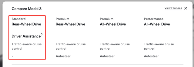 However, in the Standard Version Model 3 and Model Y, since the automatic steering function has been downgraded, Autopilot is no longer available. To experience Tesla's acclaimed assisted driving capabilities, owners of the Standard Version Model 3 and Model Y can opt for the FSD Full Self-Driving feature, priced at $8,000.