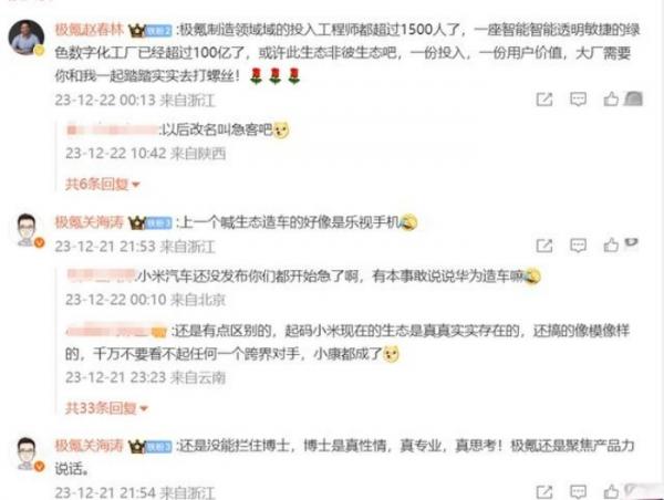 Although Zhu Ling didn't specifically name anyone, it was apparent to observers that he was deliberately mocking Xiaomi Auto. In the comments section of Zhu Ling's Weibo post, Zeekr Vice President Zhao Chunlin and then-CMO Guan Haitao both joined in with negative remarks. Among them, Guan Haitao sharply commented, "The last one making a big deal about ecosystem car-making was probably LeTV." Considering that LeTV's disastrous outcome is well-known, was Guan Haitao hinting at a similarly bleak future for Xiaomi Auto?