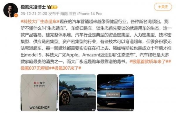 On the evening of December 21, Zeekr Vice President Zhu Ling posted a critique of 'ecosystem car-making.' He candidly stated that current automotive marketing is increasingly resembling the health supplement industry, with a plethora of new terms emerging, and he didn't grasp the meaning of 'ecosystem car-making.' "A car is, after all, a car. When discussing an ecosystem, the first consideration should be the ecosystem of using the car because creating a product is straightforward, but establishing a comprehensive system is challenging," he said.