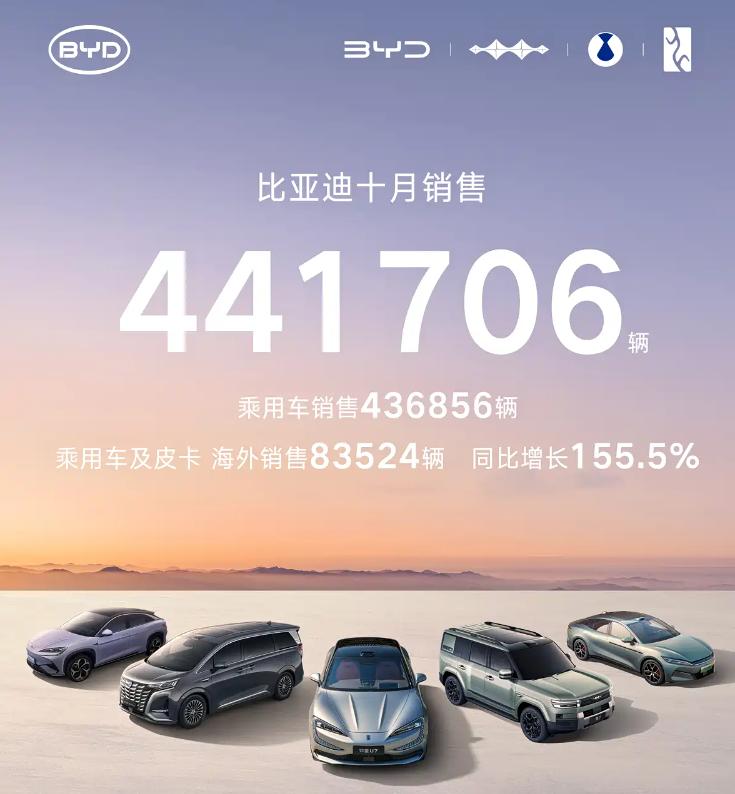 BYD delivered 441,700 units in October, hitting a new annual high. Its Dynasty and Ocean series contributed a solid 395,000 units, while its three premium brands—Fangchengbao, Denza, and Yangwang—delivered a combined 41,800 units.