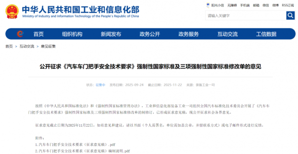 On September 24, the No.1 Equipment Industry Department of the MIIT publicly solicited opinions on the mandatory national standard "Safety Technical Requirements for Automobile Door Handles" and amendments to three other mandatory national standards. These clearly stipulate the standard for hand operation space on car door handles relative to the vehicle body surface, targeting the hidden door handles that have caused numerous safety accidents.